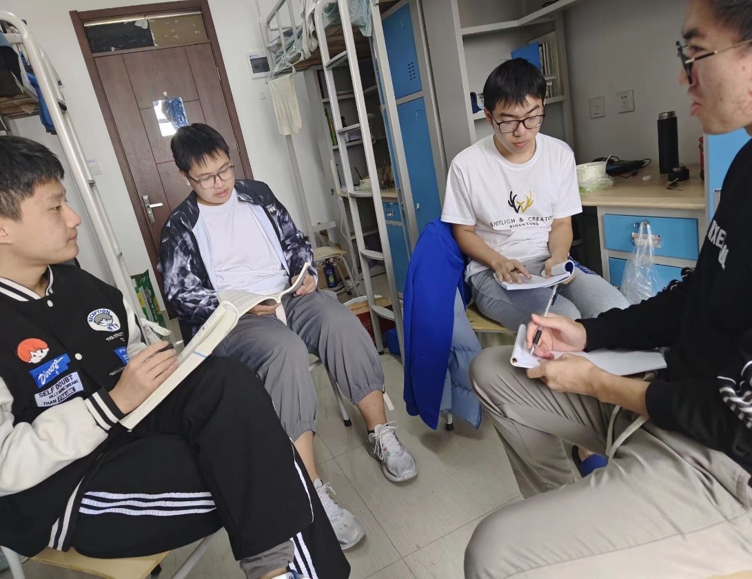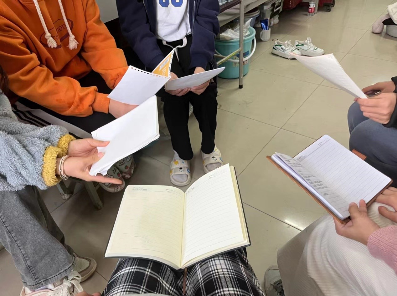 活动在班级各宿舍中开展,舍长首先为大家概括了一下这次活动的目的,然后舍员分别为大家介绍了自己认为最有意义的几本书。活动后,同学们把收获记录到本子上。