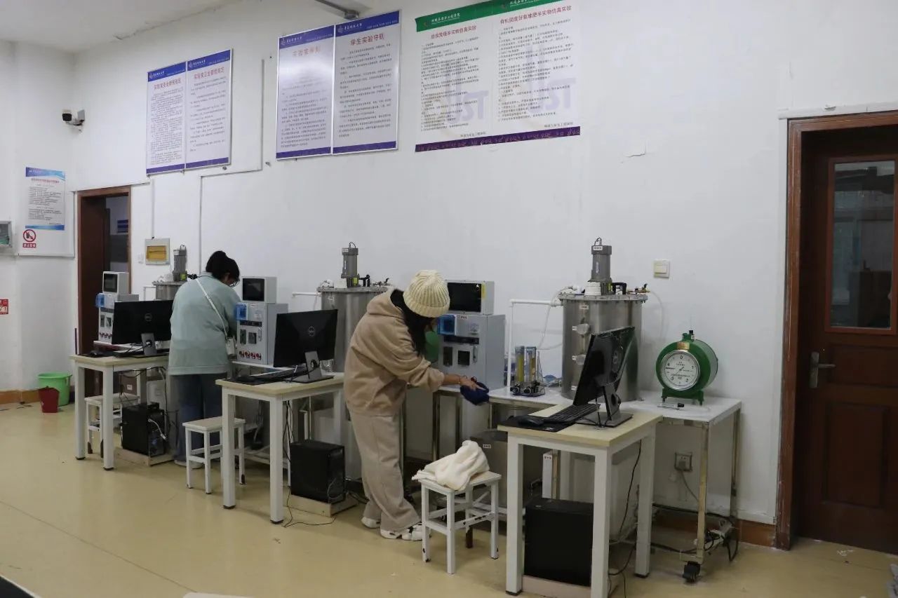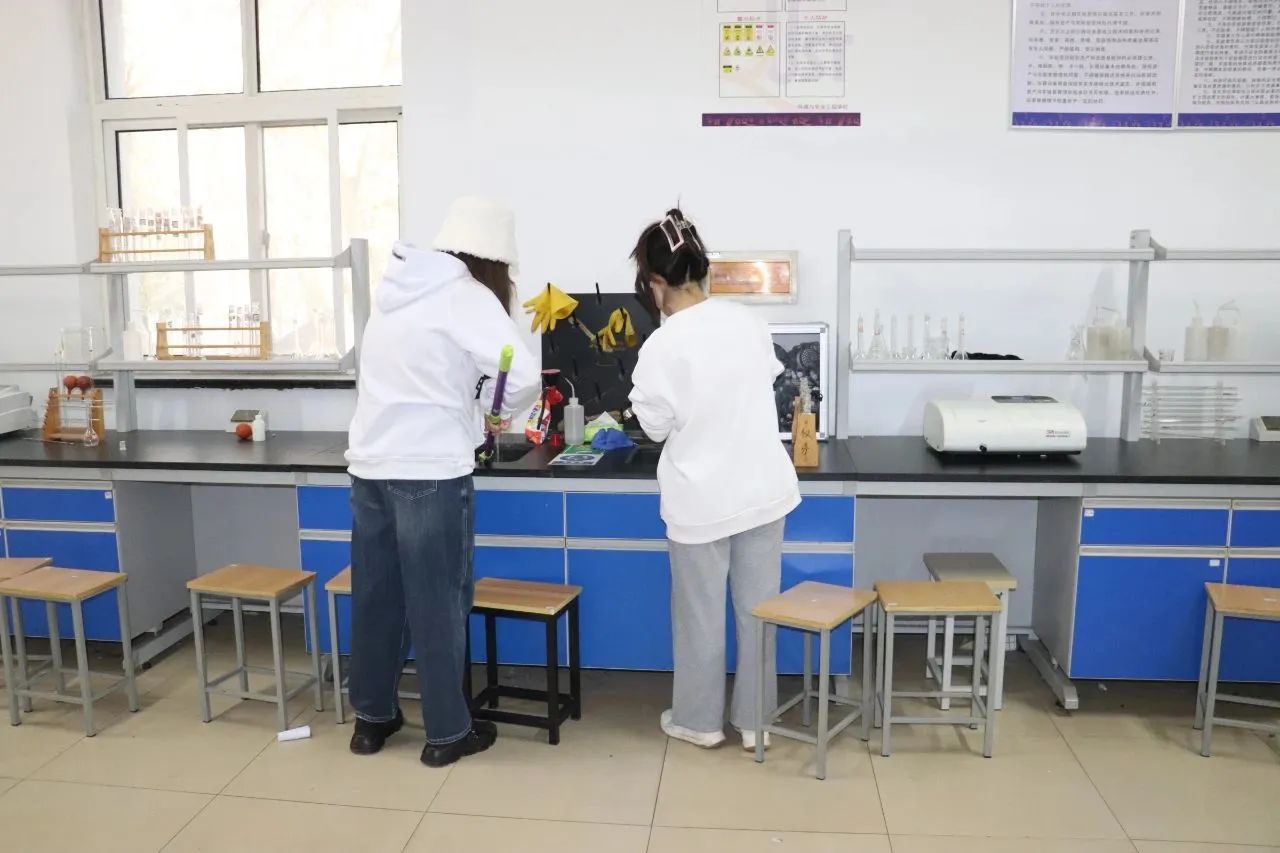 实践过程中,同学们在老师的组织安排下分工合作,对实验室进行卫生大扫除。除了清扫地面卫生外,同学们还整理了实验器材,将各类化学试剂归类整理,并检查了实验室中插排、灭火器材等是否完好,确保实验室的安全。同学们积极主动,团结协作,高效率地完成了本次活动。