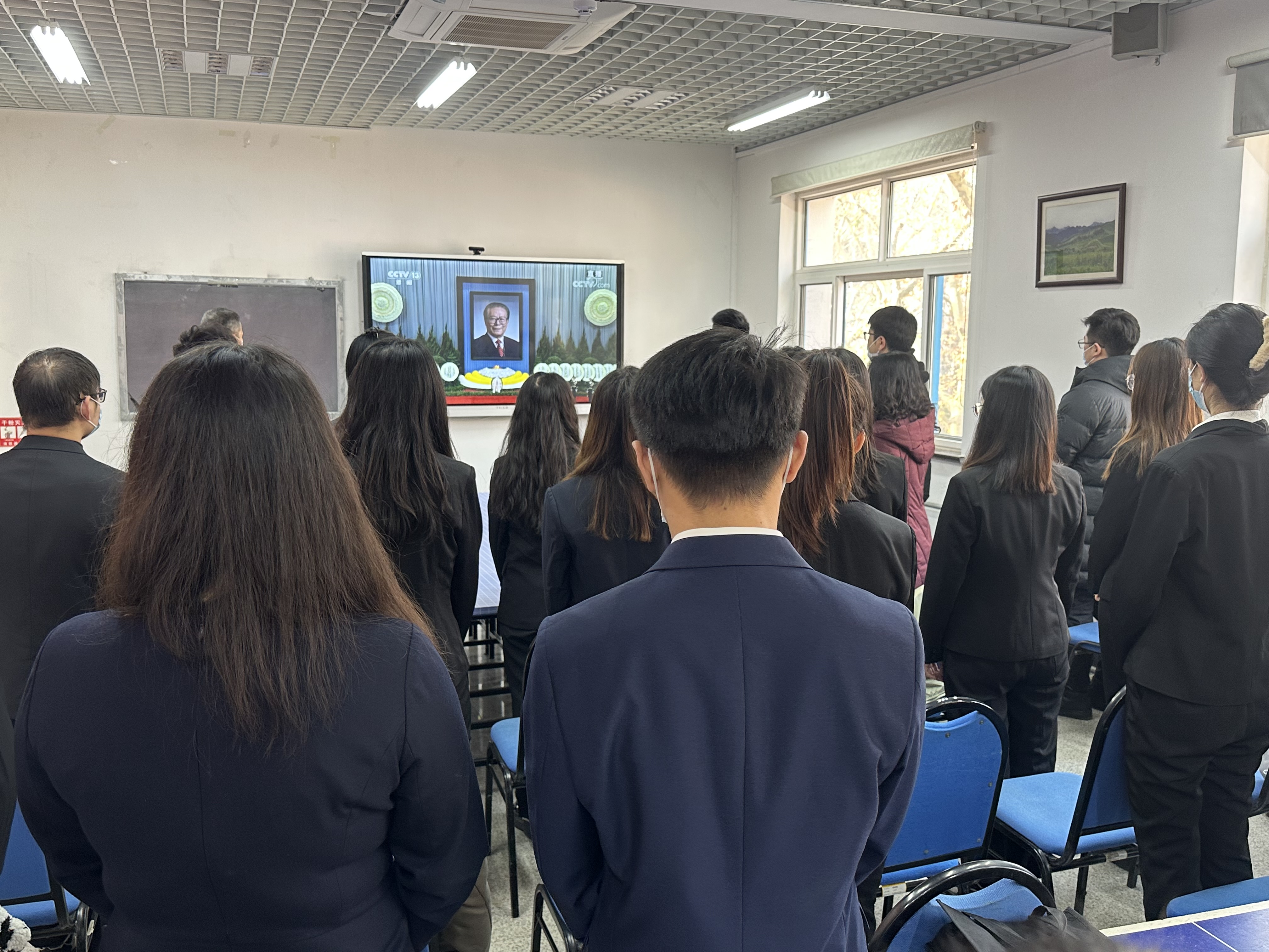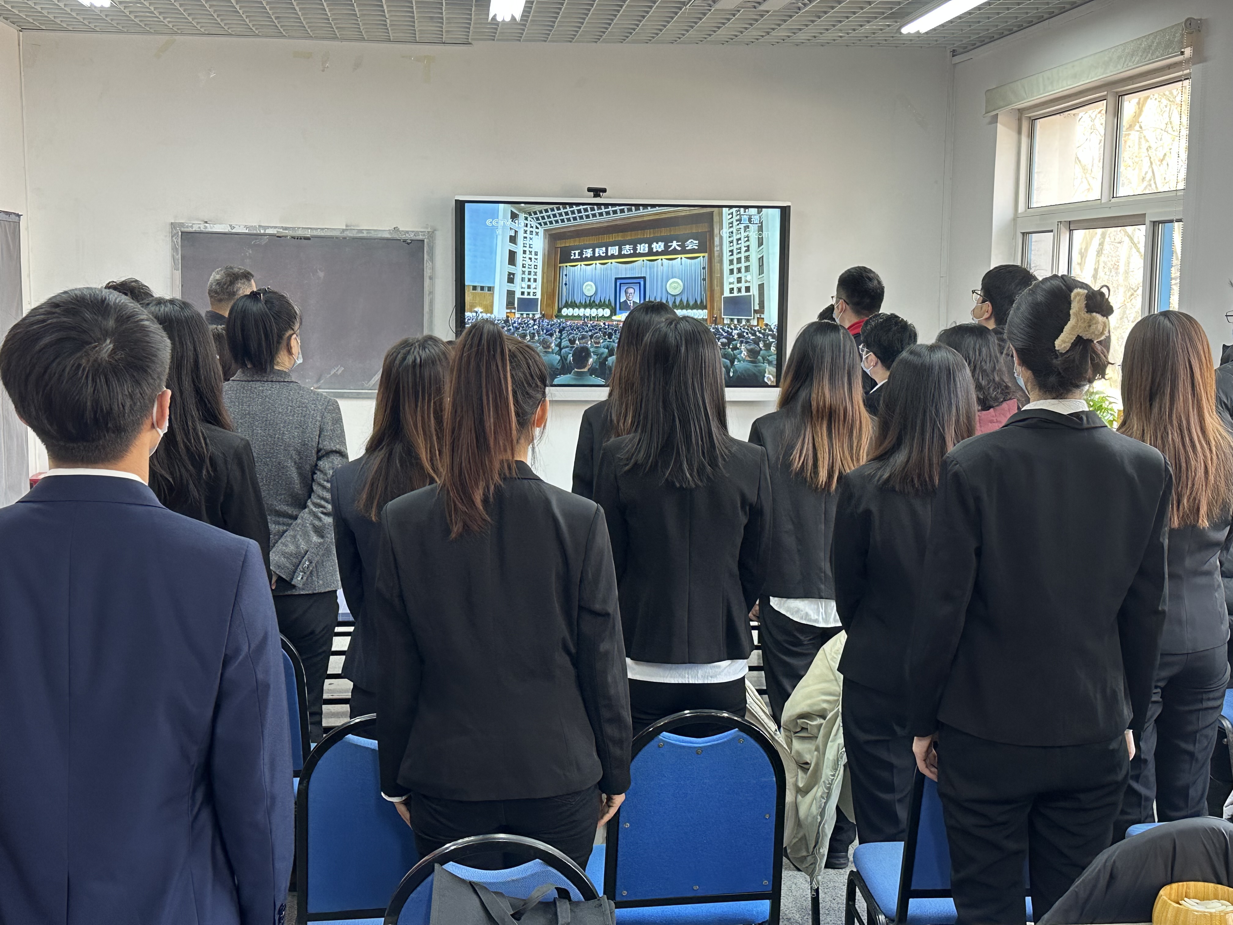 上午10时,yl23455永利官网副院长周贵忠、张峰,专业教师代表李晶莹、刘娟、程家骥、王栋、滕腾,学工办、团委全体教师,学生代表,40余人集中在学院楼3015会议室收看了追悼大会。各党支部、教研室、各班级,自行组织收看了追悼大会。