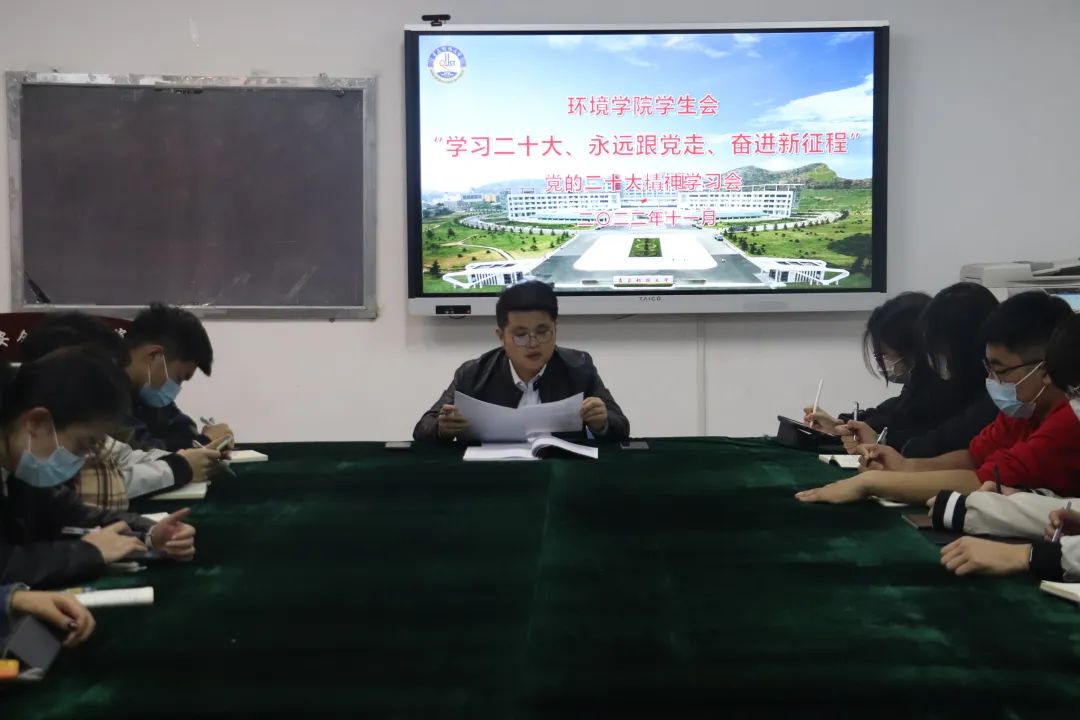 在全校上下齐心协力抗击疫情的特殊时期,11月7日晚,yl23455永利官网学生会开展了“学习二十大、永远跟党走、奋进新征程”党的二十大精神学习会,传达学习党的二十大精神,对学生会重点工作进行部署。会议由学工办主任兼团委书记、学生会指导老师钟硕主持,学生组织主要干部参加会议。