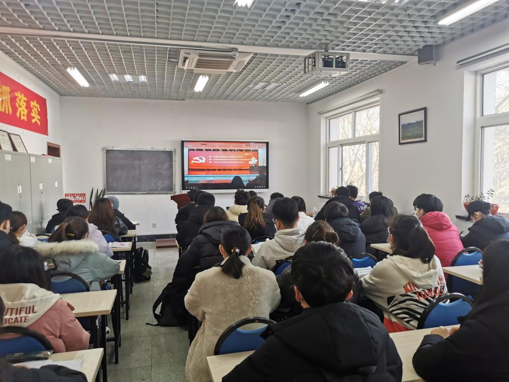 12月30日,学校团学骨干党的十九届五中全会精神宣讲报告会在崂山校区第二报告厅举行,党委书记马连湘作了《学习全会精神 融入学校大局 廓清成长路径》主题辅导报告,学院团委书记钟硕现场聆听了报告会,学院学生会和研究生会学生骨干、团支书和班长代表、学生代表等60余名青年学生在学院楼3015会议室通过观看直播的方式线上参加了报告会。