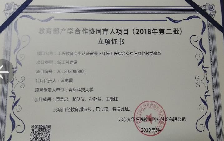 2018年第二批教育部产学协作育人项目“工程教育专业认证背景下环境工程综合实验信息化教学改革”(201802086004, 蓝慧霞) |