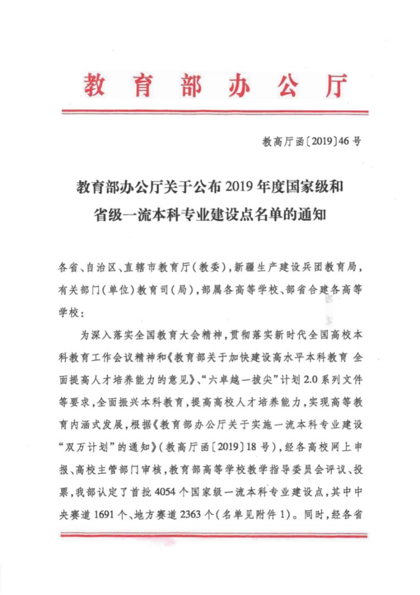 2.2 教育部办公厅关于公布2019年度国家级和省级一流本科专业建设点名单的通知