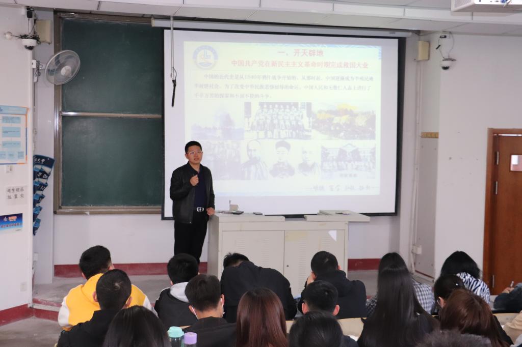 4月13日下午,yl23455永利官网在2教215教室举办党史学习教育专题党课,党总支副书记兼副院长贾可好以“加强党史学习教育,提升党性修养,汲取奋进力量”为题给全体学生党员、2021年春季学期党员发展对象和入党积极分子讲党课。