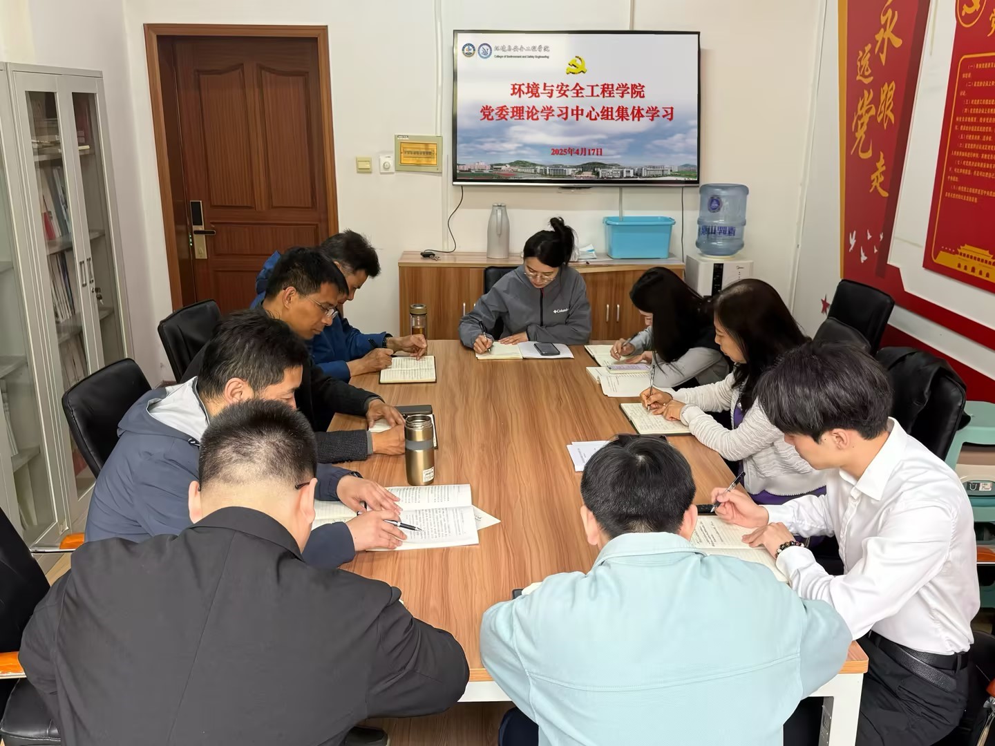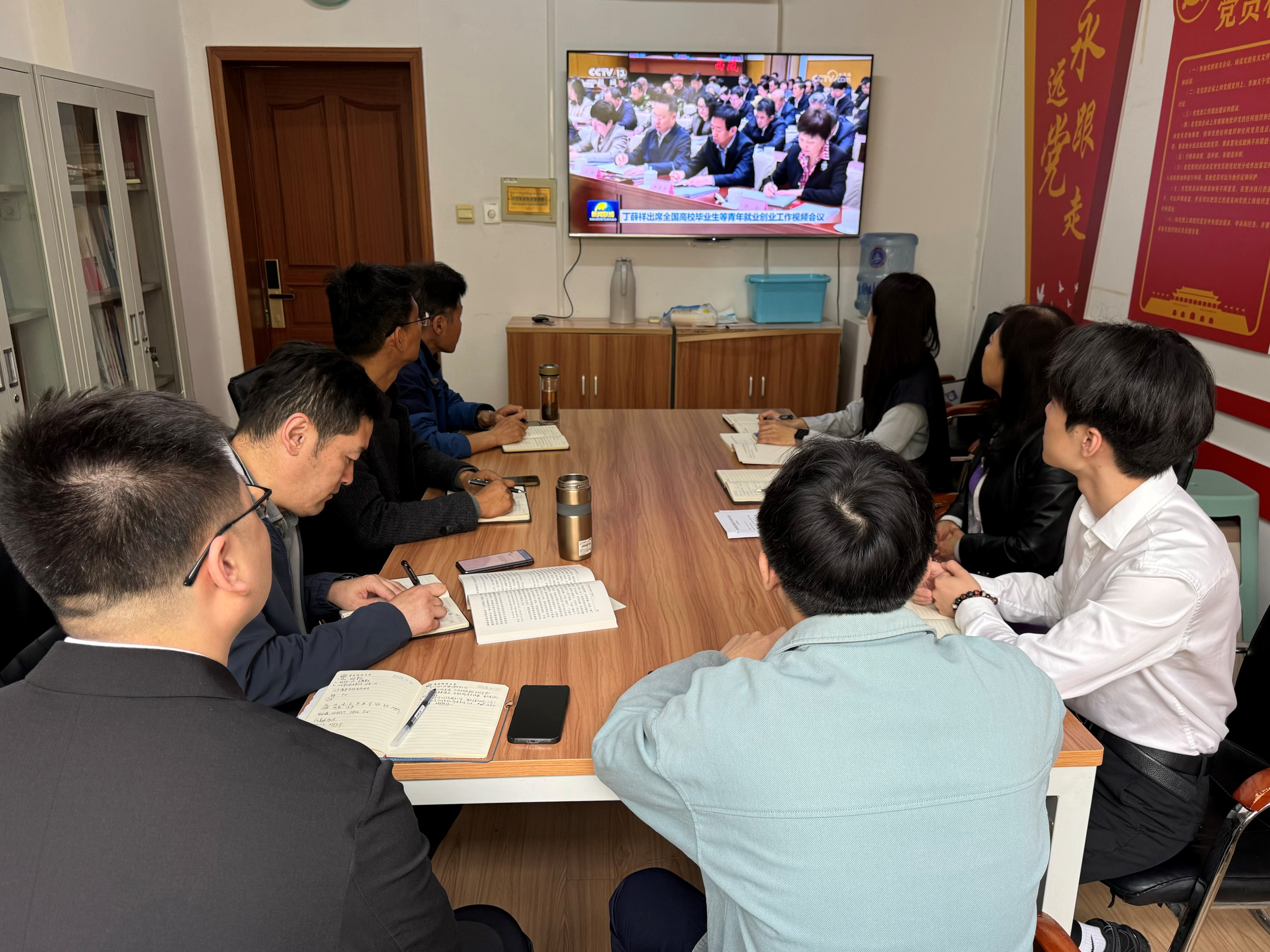 与会人员集体学习了《习近平关于加强党的作风建设论述摘编》《<求是>杂志发表习近平总书记重要文章<加快建设文化强国>》《学校学习教育专班办公室工作提示(十二)》部分内容,以视频方式观看了《丁薛祥出席全国高校毕业生等青年就业创业工作视频会议》相关内容。