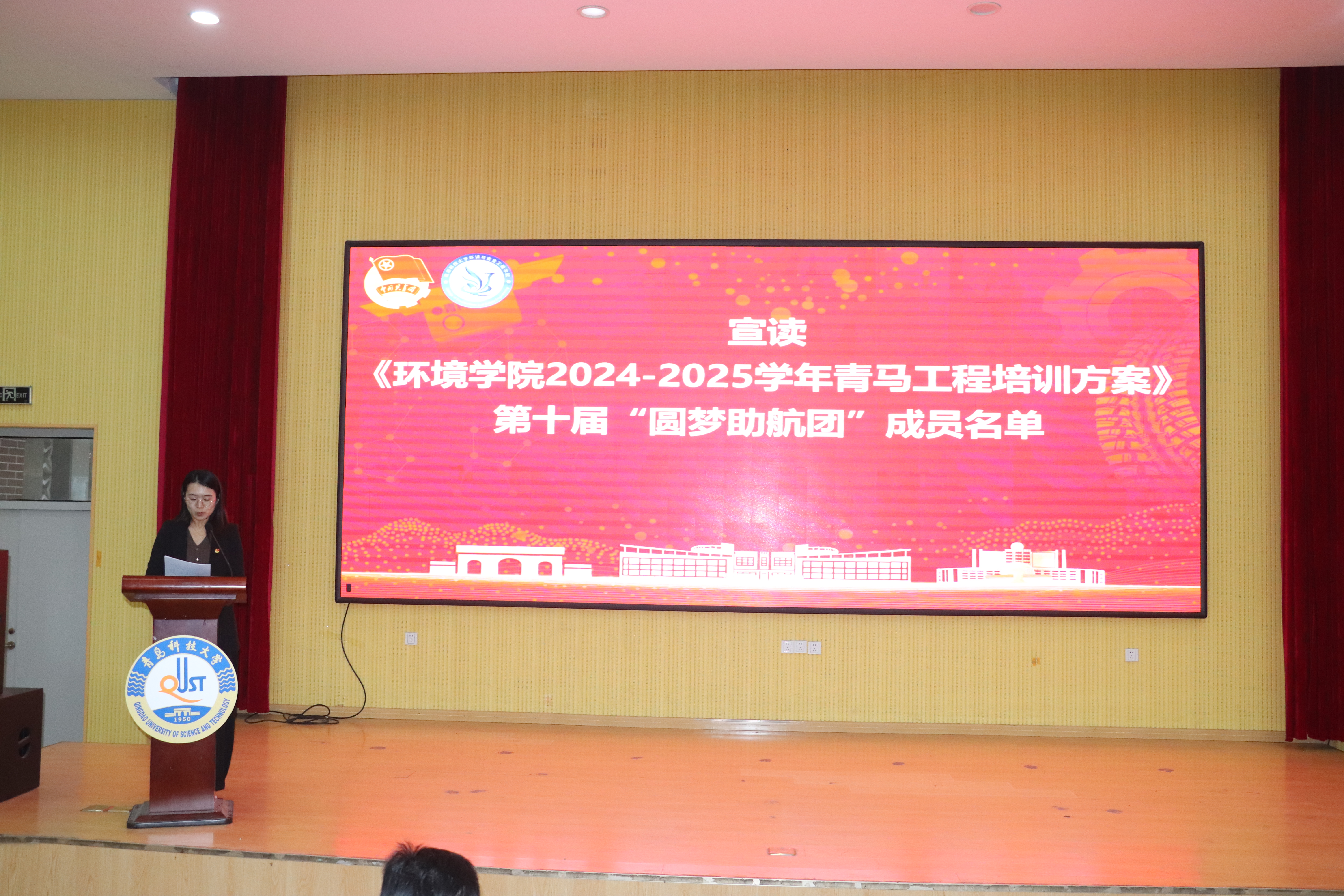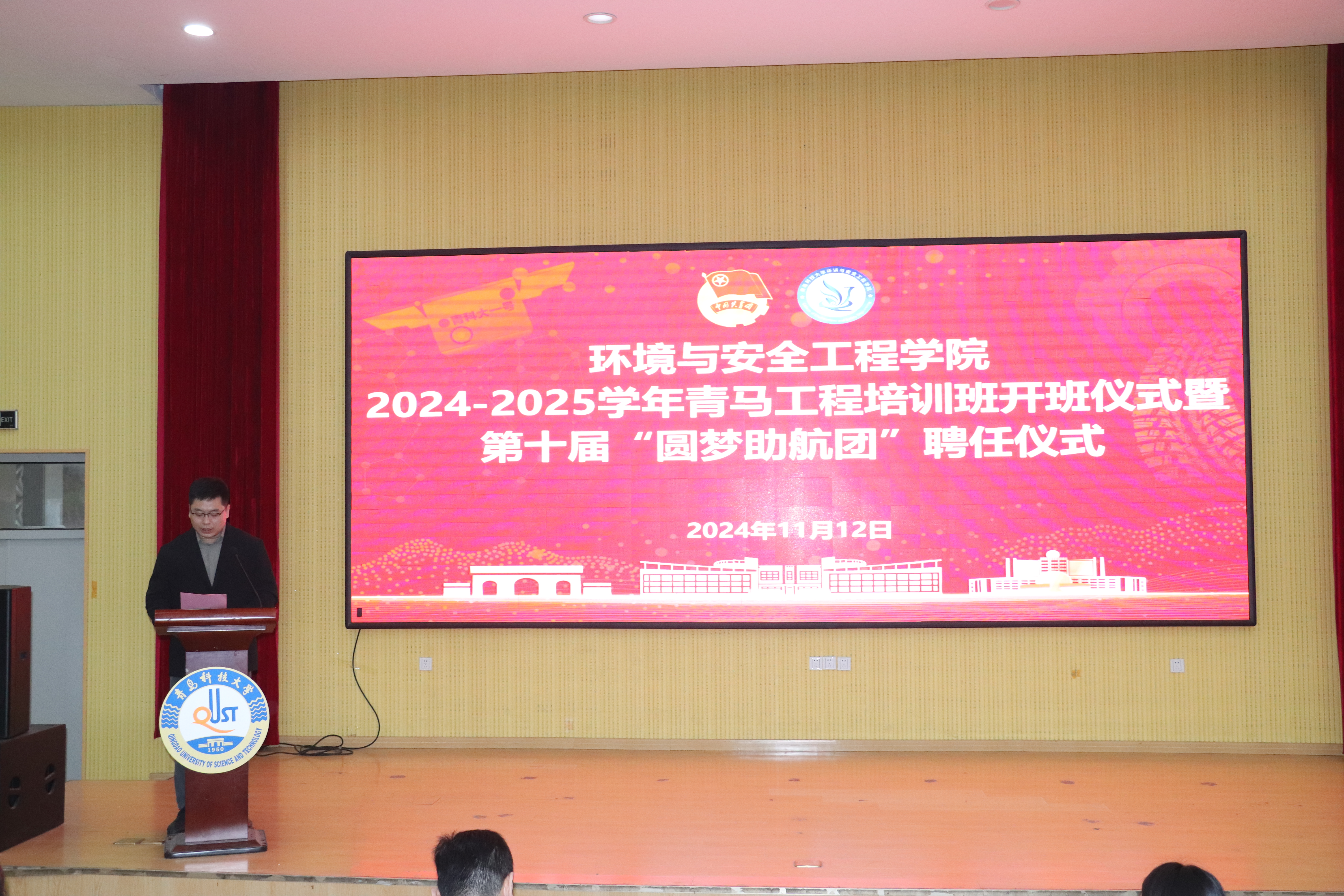 开班仪式在高亢激昂的国歌声中拉开帷幕。巩金梦宣读了《yl23455永利官网2024-2025学年青马工程培训方案》和第十届“圆梦助航团”成员名单。