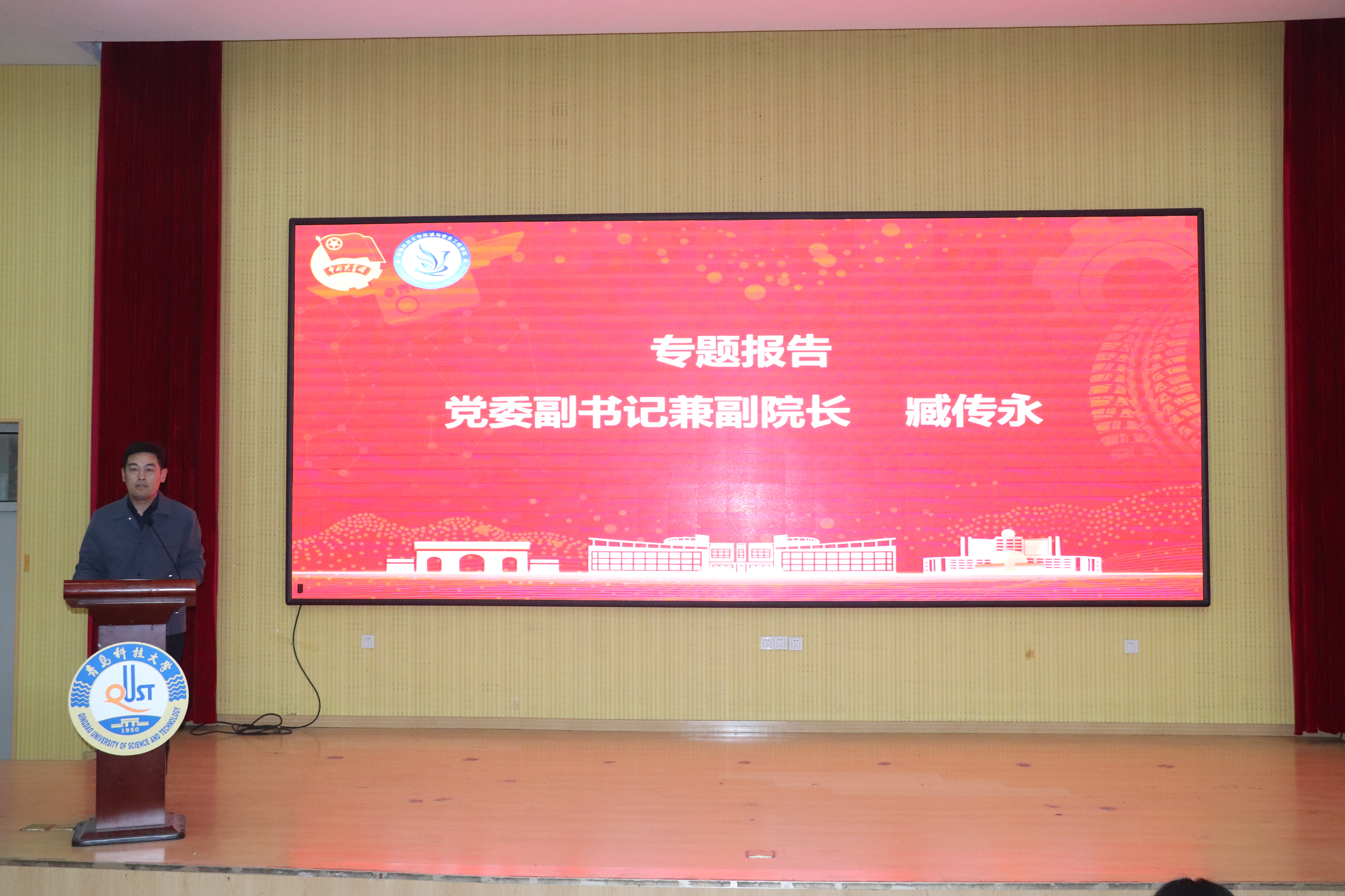 仪式结束后,臧传永为全体学员作专题报告,他强调全体青马工程学员要深刻认识到新时代青年的使命与担当,努力提升个人综合素质,成为坚定的青年马克思主义者,紧紧围绕在党的周围,用青春的能动力和创造力激荡起民族复兴的澎湃春潮,书写无愧于时代、无愧于历史的华彩篇章。