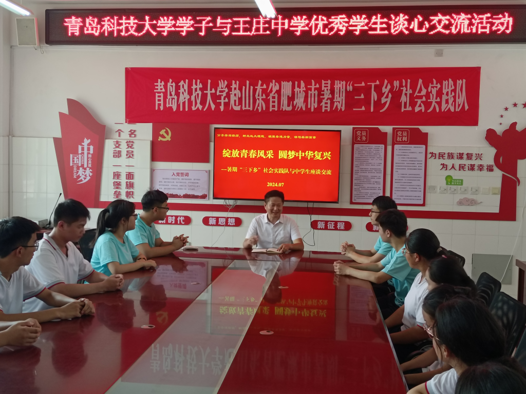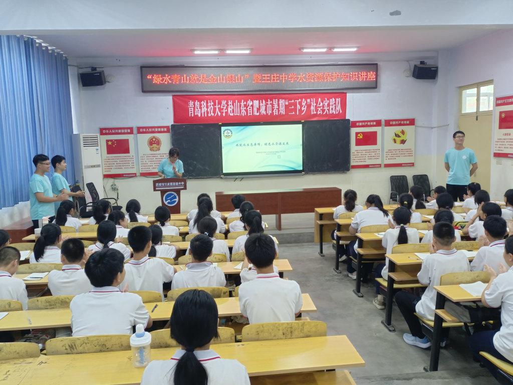 为深入学习贯彻习近平新时代中国特色社会主义思想和党的二十大精神,进一步引导广大青年学子在社会课堂中受教育、长才干、作贡献,近日,青岛科技大学赴肥城市“以水促学,以学促兴”实践队前往肥城市王庄镇初级中学开展暑期社会实践活动。