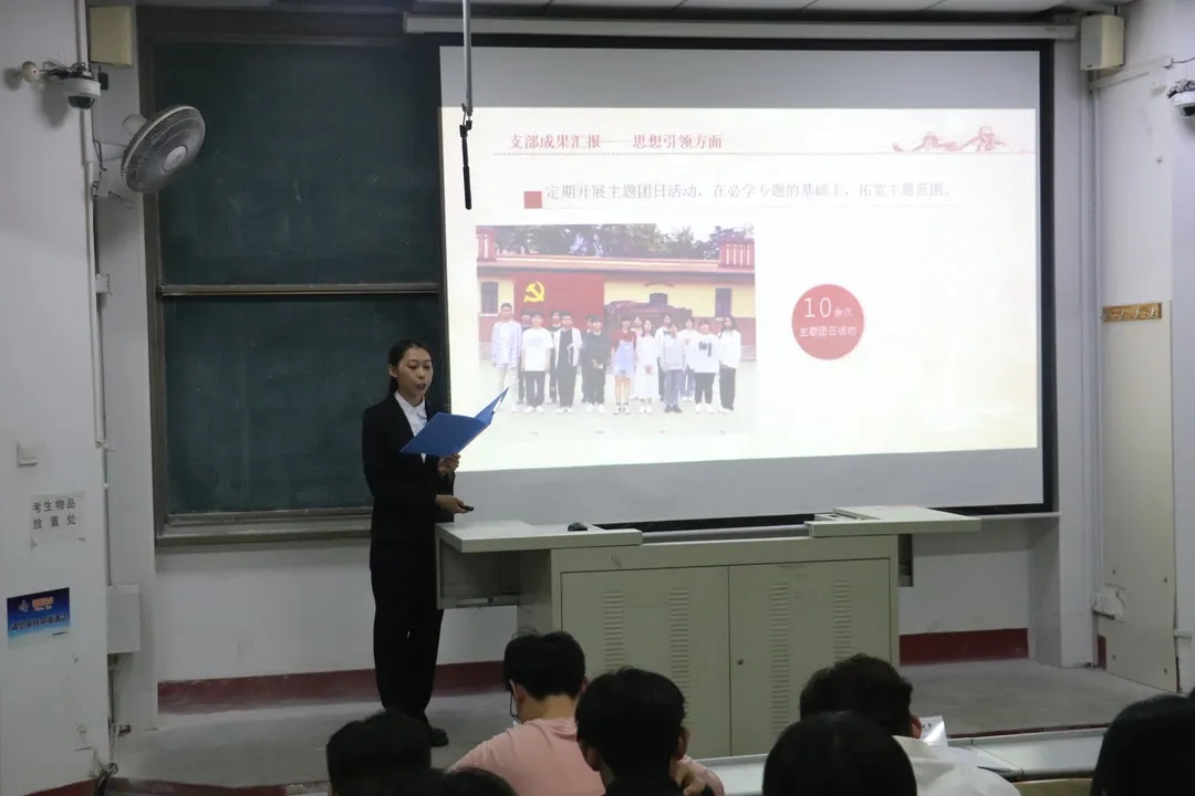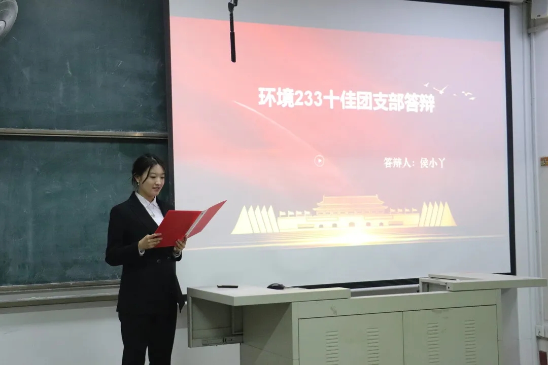 答辩会中各团支部准备充分,答辩人按顺序依次上场,分别从个人基本情况、支部建设情况、基础团务工作、支部特色工作等方面展开陈述,通过视频、图文等多种方式展示各支部成员在学业成绩、创新创业、志愿服务中的模范带头作用,充分展现出各支部的强大凝聚力和广大团员青年踔厉奋发的精神风貌。