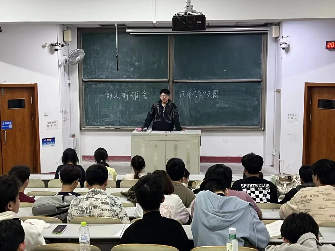 为引导学生充分认识宿舍文明重要性,增强文明意识,共同维护优良宿舍环境,yl23455永利官网组织各班召开“宿舍文明,从我做起”主题班会。班会中,各负责人对本班宿舍存在问题进行总结,鼓励大家树立良好的个人卫生和生活习惯,并对卫生管理要求和安全隐患问题进行详细说明。同时,依托学院实验室安全巡查“党员先锋岗”和学生会权益部门,定期开展宿舍检查,排查安全隐患,强化宿舍安全意识,培养良好行为养成。