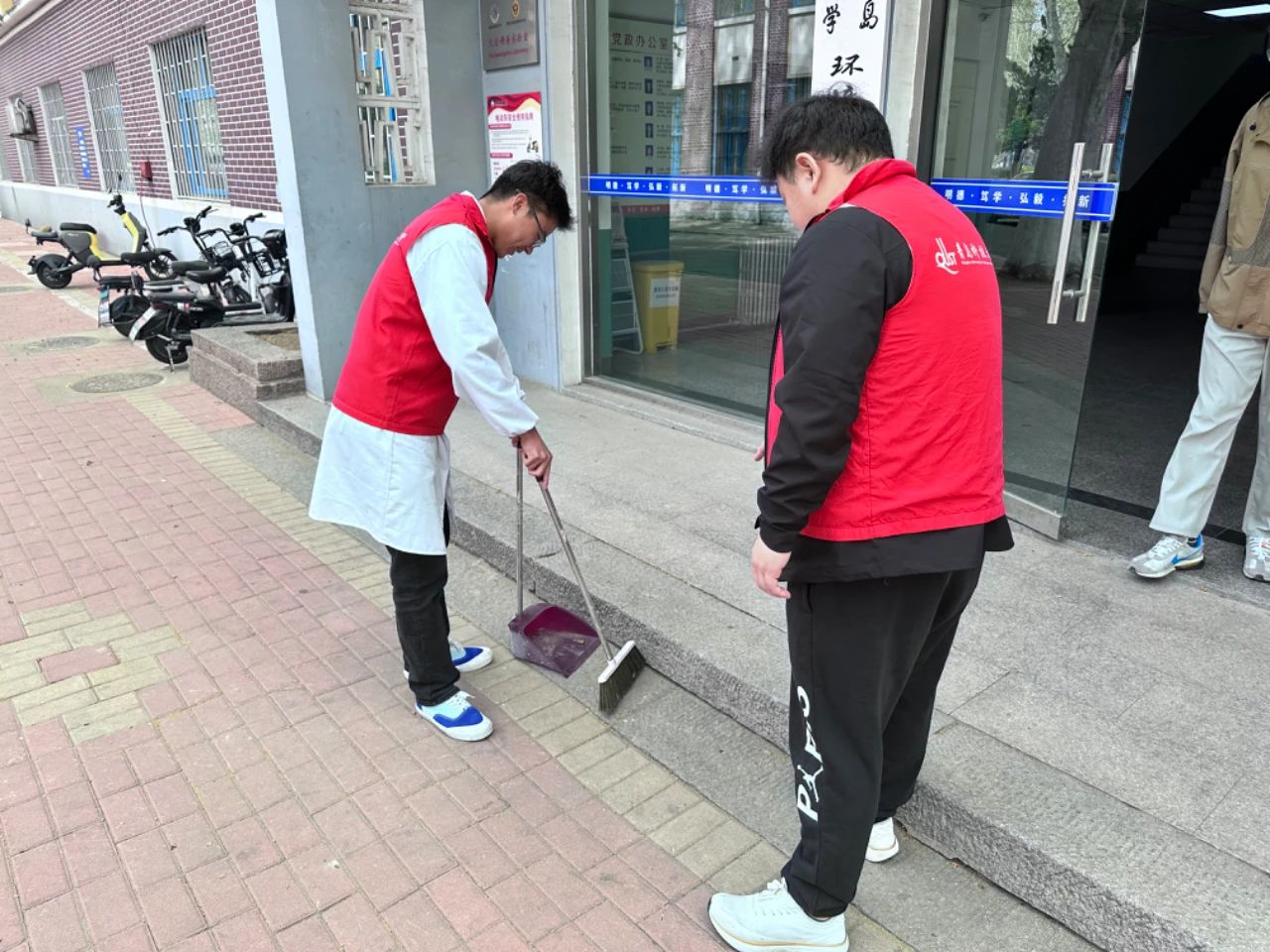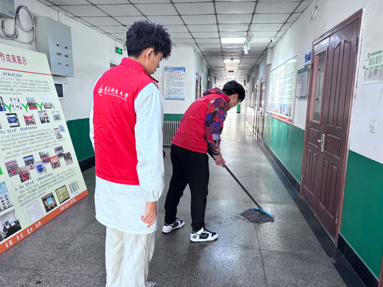 学院后天环保协会组织志愿者一起打扫学院楼的卫生,志愿者们拿起劳动工具,对学院楼的走廊、实验室、卫生间等展开“地毯式”清扫,为同学们营造一个更加整洁、舒适的学习环境,以实际行动助力营造良好的校园环境。