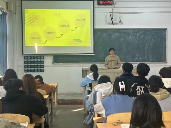 本次活动面向2023级同学展开,由四六级成绩优异的2021级、2022级同学进行经验分享。分享者主要针对学习资料、学习软件、学习计划等方面进行分享交流,强调要通过日常积累来锻炼听、说、读、写的能力,并对同学们提出的问题进行了答疑解惑,给予同学们一些自主学习备考的建议。