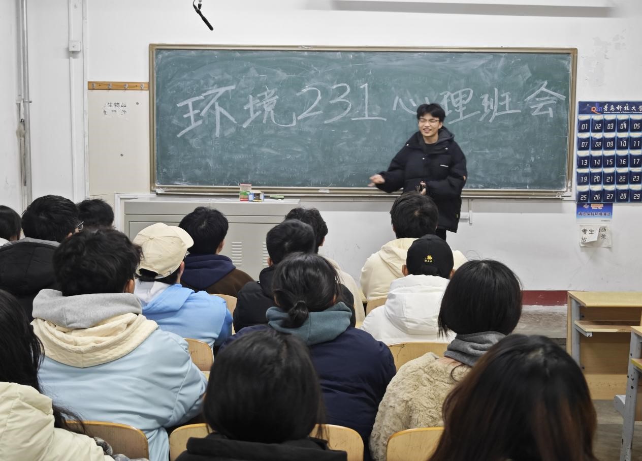 环境231心理委员张国玺分享了自己如何面对精神内耗的好办法,班会中穿插了生动有趣的游戏环节,在游戏互动中巧妙地加强了同学们间的团结与凝聚力,在欢声笑语中绽放自信的光芒,加强同学们的交流与合作,增强集体归属感。