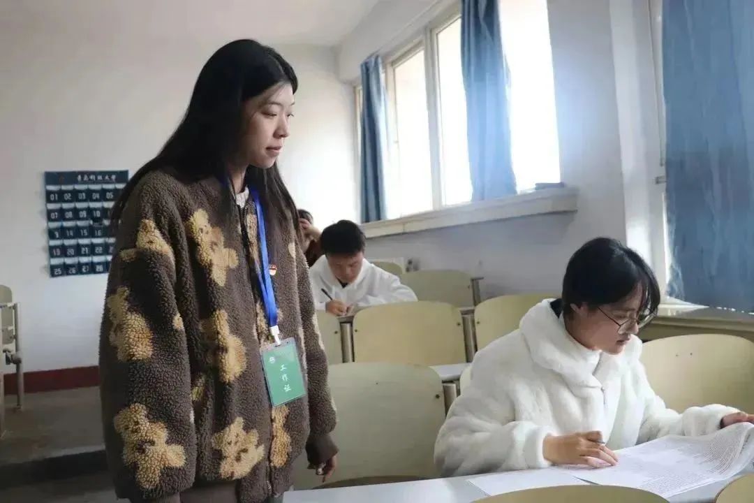 考试期间,同学们提前10分钟有序就坐,遵守考场纪律认真作答、仔细检查。监考员等相关负责人员各司其职,维护考场秩序,为同学们创造良好的考试环境。
