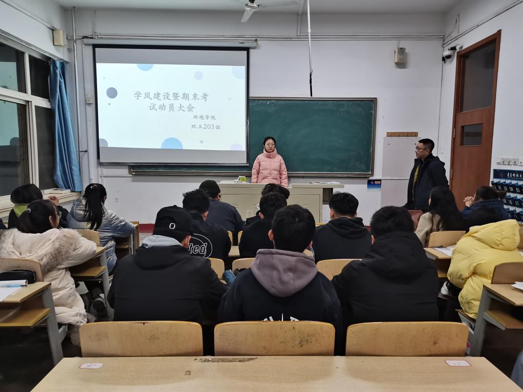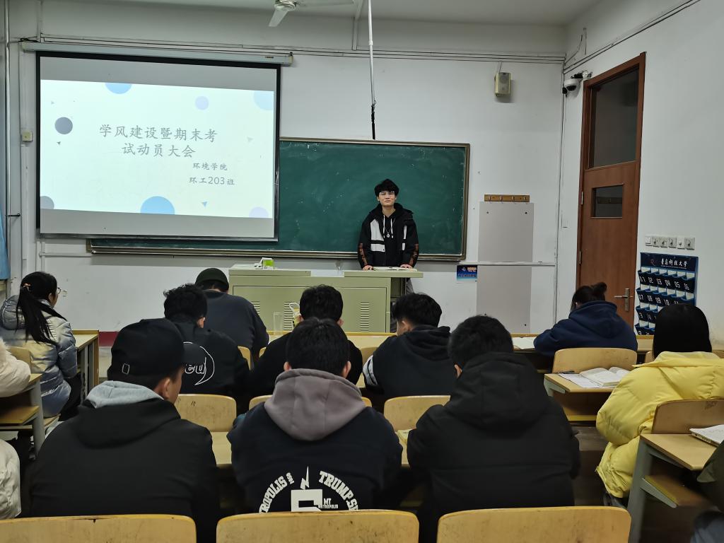 为总结期中考试经验,引导学生明确学习目标,加强班级学风建设,12月1日晚,环工203班在二教203召开了学风建设暨期末考试动员大会。2020级辅导员王冰洁老师、环工203班班主任刘帅老师及环工203班全体同学参加本次班会。