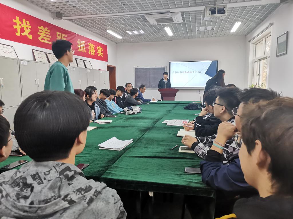 会上,班长对本班成绩进行分析并介绍各科目的学习方法,针对同学们学习上的问题进行解答。而后,团支书向大家分享了自己的学习方法与心得,帮助同学们更好地走出学习的困境,拨开疑云,引发了同学们的积极反响。