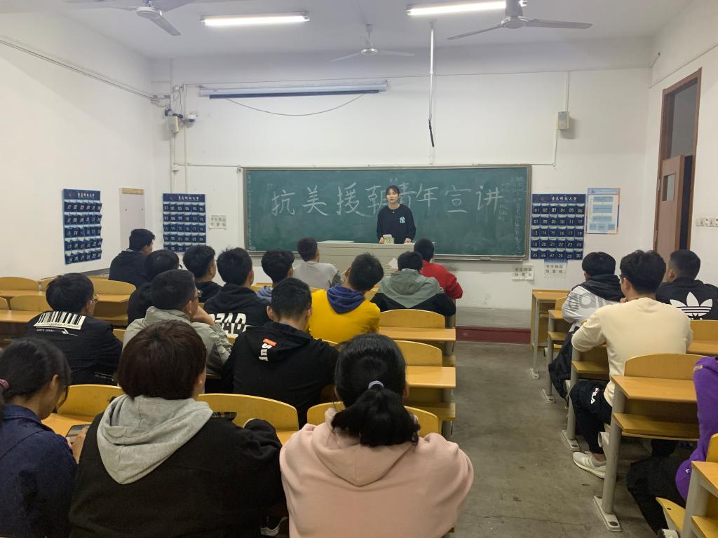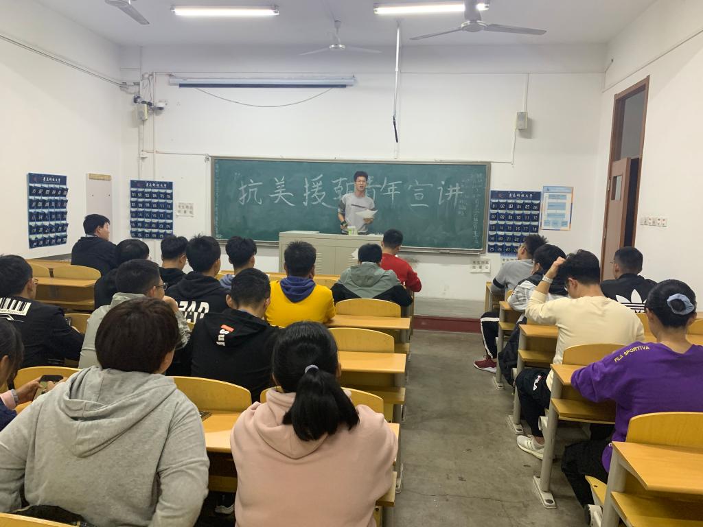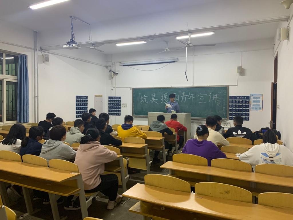 首先,团支书李霜莹同学带领同学们回顾了抗美援朝的历史以及其中涌现出的战斗英雄,使同学们对抗美援朝战争和中国人民志愿军有了更深入的了解,认识到当下幸福生活的来之不易。