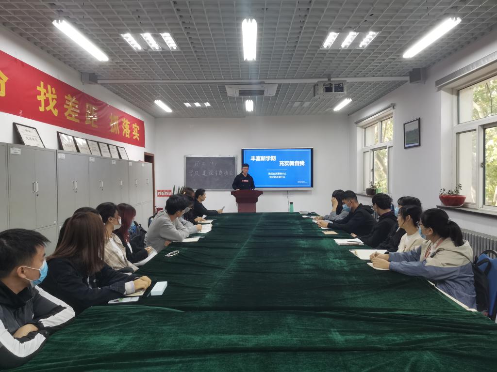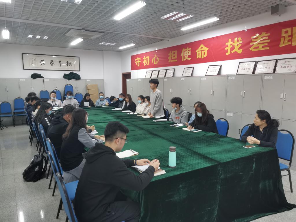 会议伊始,班长高元勋就上学期成绩与大一第一学期进行对比,指出班级整体成绩下滑较为严重,同专业其他班级也存在着不小的差距,鼓励同学们认真总结思考,在新的学期取得进步