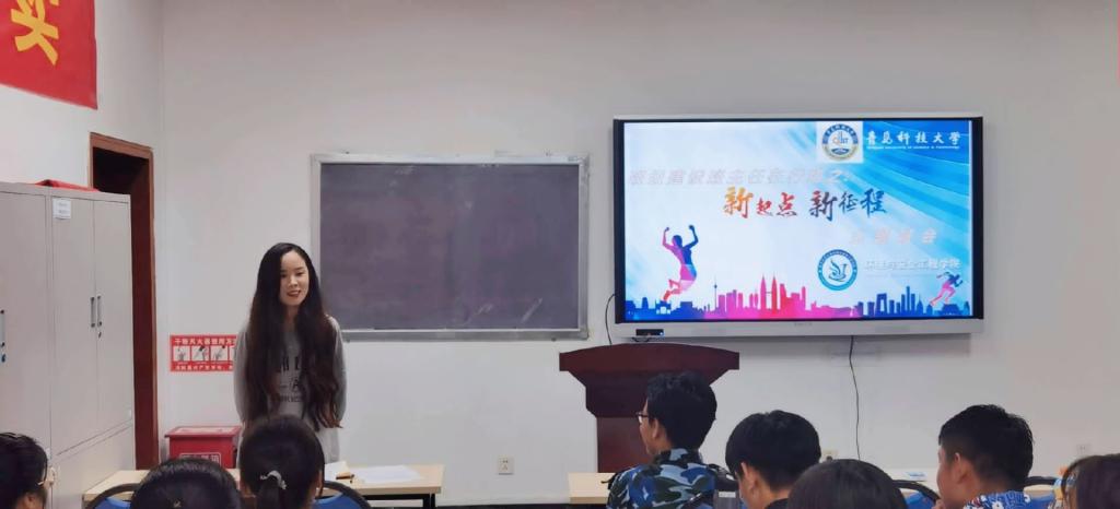 在同学们热情的自我介绍之后,王冰洁老师对大家的大学生活提出三点要求和期许,一是希望大家做不忘初心的人,二是希望大家做踏实做事的人,三是希望大家做勇于做梦的人。王老师通过丰富的事例讲解,告诉大家既要仰望星空,又要脚踏实地;既要抬头看天,也要低头做事。