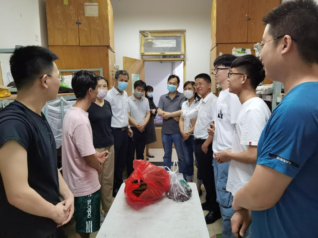 为了不给他们留下遗憾,给他们的大学四年划上尽量圆满的句号,14日晚,yl23455永利官网党政领导,各教研室、实验室主任,辅导员到毕业生宿舍,深切探望毕业生,为他们唠唠家常,共同回忆四年历程,并为他们送去印有“祝2020届毕业生前程似锦”的定制签字笔以及夏日清凉西瓜。
