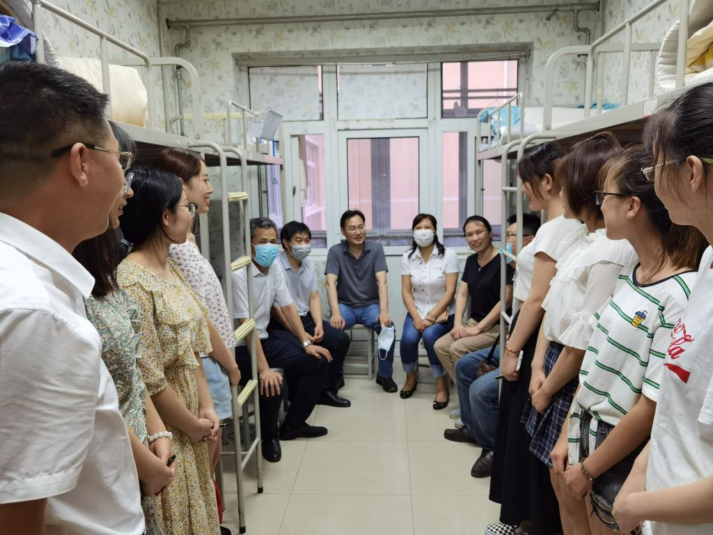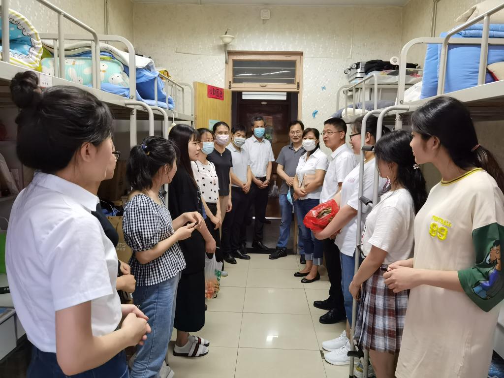 “你去了哪里”、“还有什么困难”、“明天离校,回家还是直接去就业单位吗”、“路上注意安全、一路顺风”……“报告老师,我考取的是中国科学院大学”、“老师,我推免到天津大学攻读硕士研究生”、“老师,我签的是烟台万华” 、“报告老师,我是基层就业”……走访过程中,学院领导老师温暖亲切的关怀与同学们铿锵有力的回答交织在一起,宿舍楼内频频传来阵阵欢笑声。