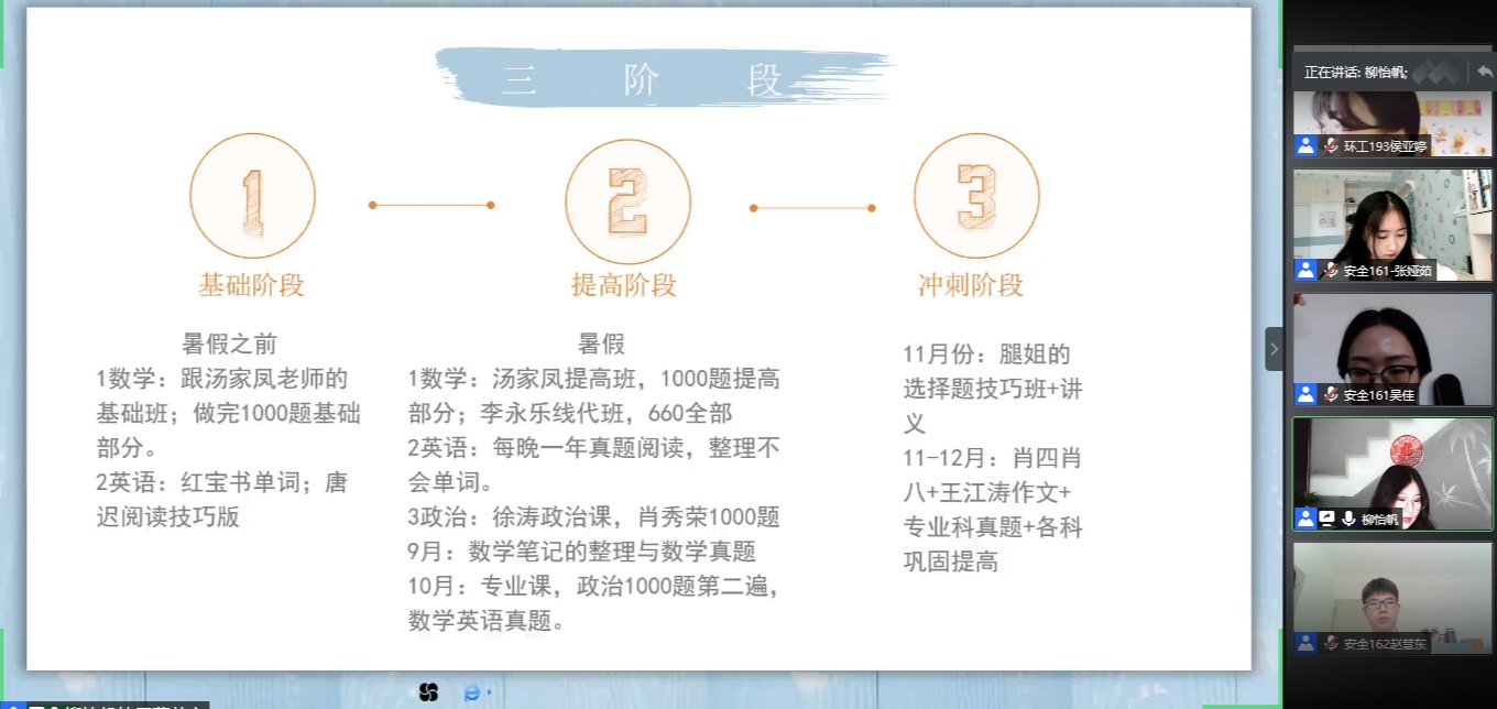 为帮助即将考研的大三同学确定考研方向,了解考研相关信息,营造良好的考研氛围,充分备战2021年考研,6月12日,yl23455永利官网举行线上考研经验分享交流会。yl23455永利官网2017级辅导员钟硕老师、于杰老师以及2016级考研优秀学生代表出席交流会,2017级全体学生参加了此次交流会。