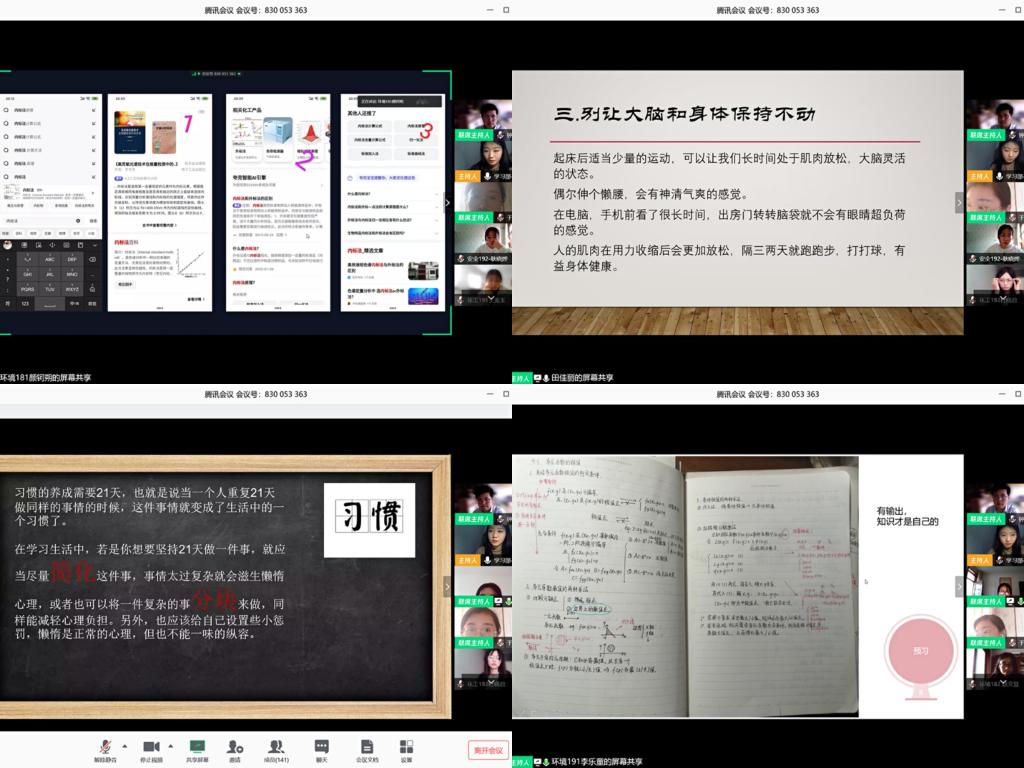 此次“学习小妙招”居家学习经验分享会的举行,有利于帮助广大学子端正学风,在交流与学习中改进学习方法,掌握在线学习技能,提高学习效率。同时,引导同学们在居家学习时间把握机遇,开拓思维,提升文化素养,实现自我成长提升,为日后的学习打下坚实的基础。