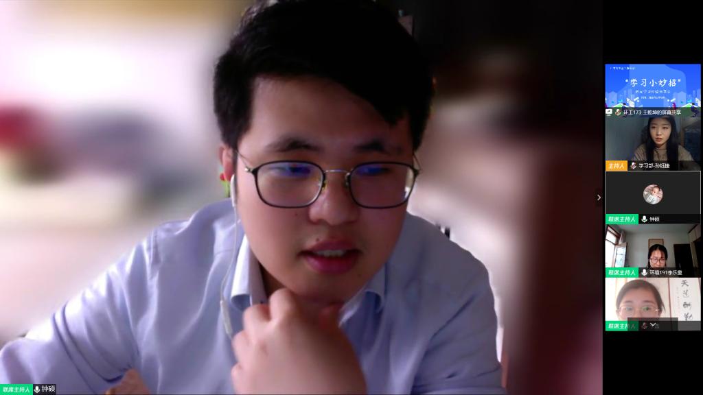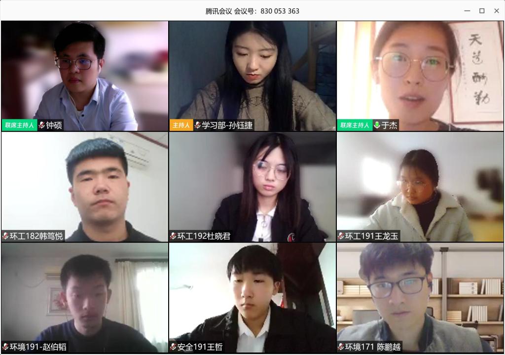 为全面贯彻落实“停课不停教,停课不停学”的教学方针,帮助环境学子完善学习方法,提升在线学习技能,加强自律意识,充分利用居家学习时期实现自我提升,yl23455永利官网学生会学习部于4月14日以“同心同向共战疫情,深思笃学拓新知”为主题,依托腾讯会议平台开展“学习小妙招”居家学习经验分享会。分团委钟硕老师、于杰老师参加了此次活动。