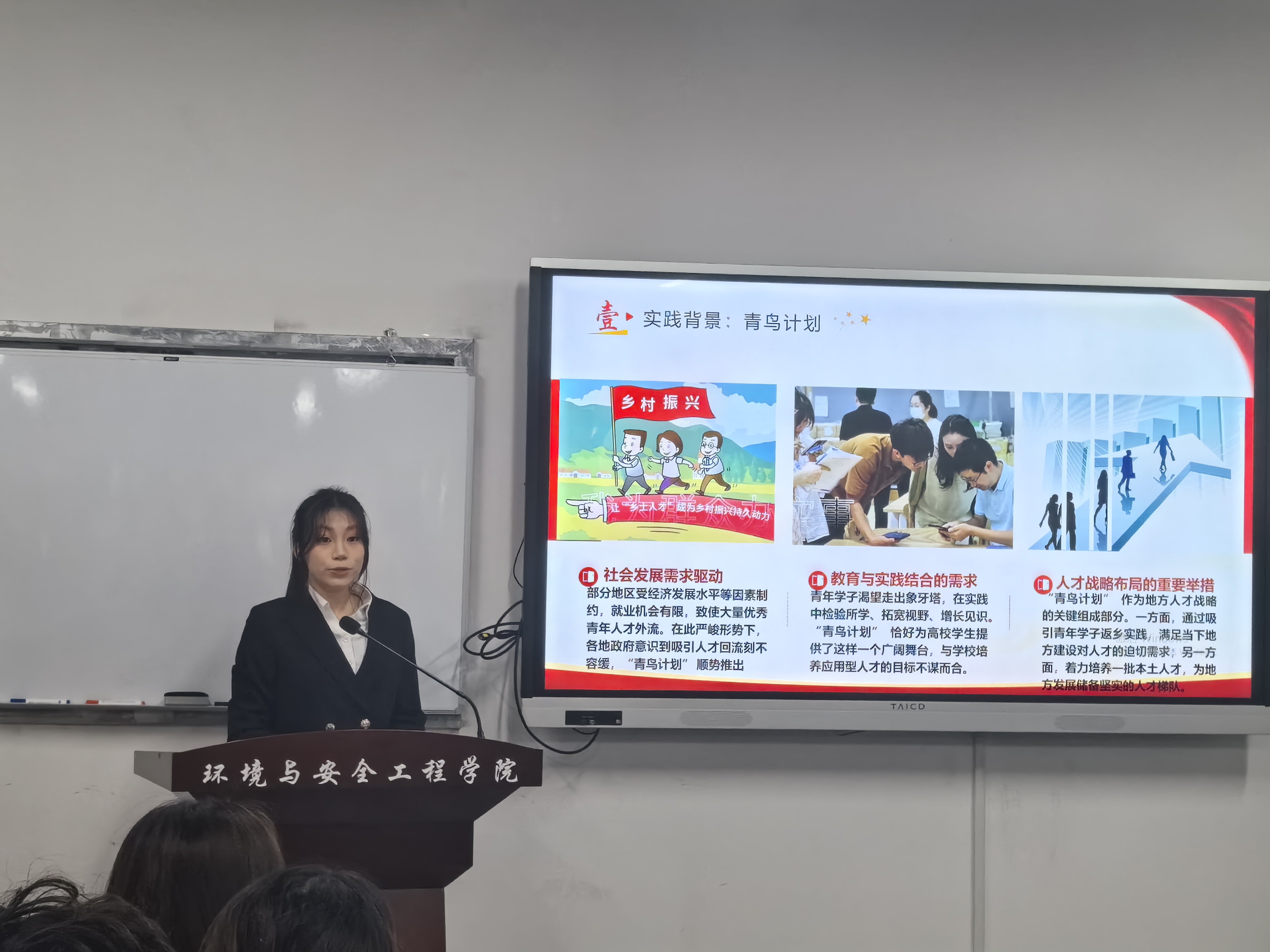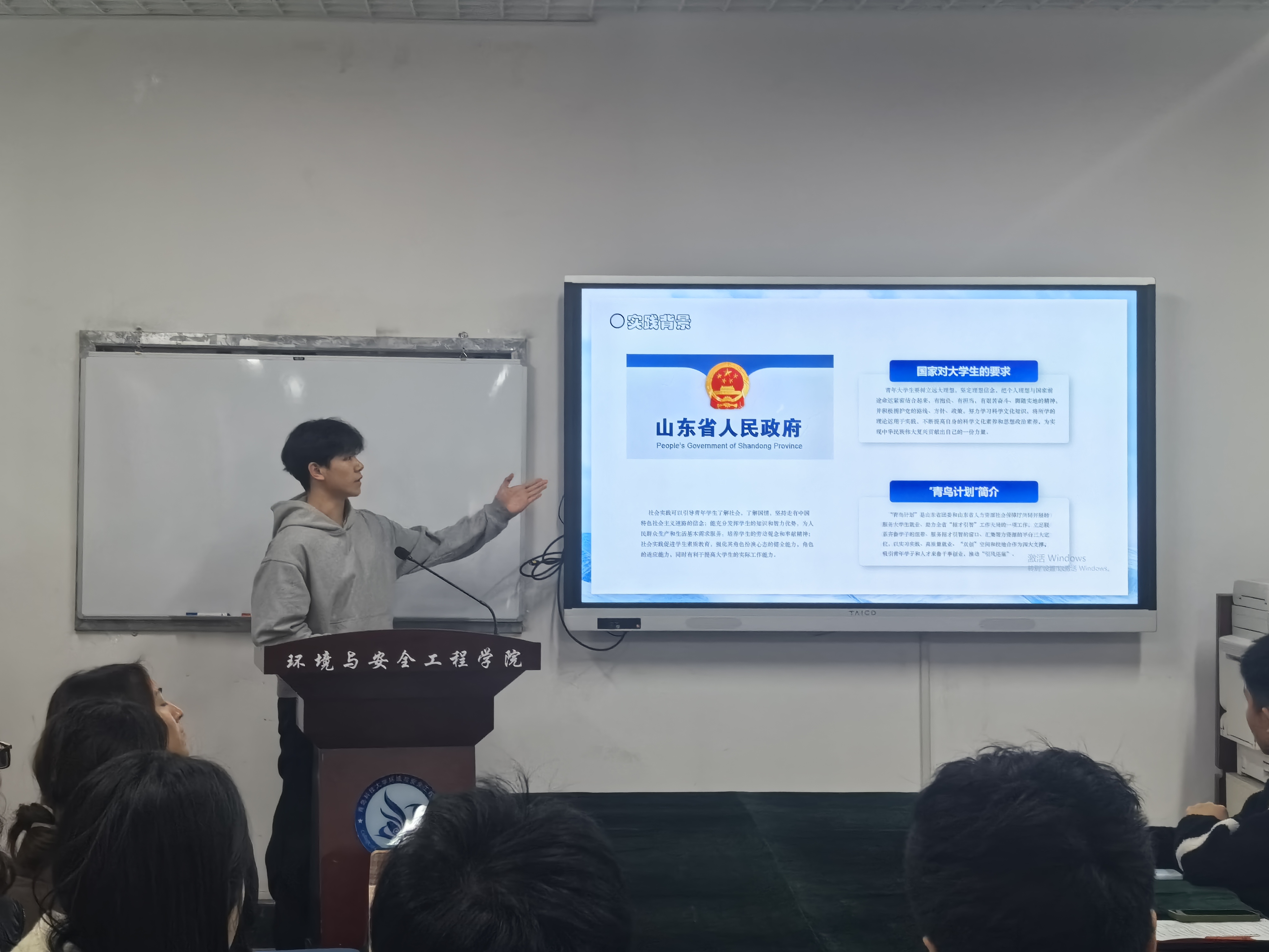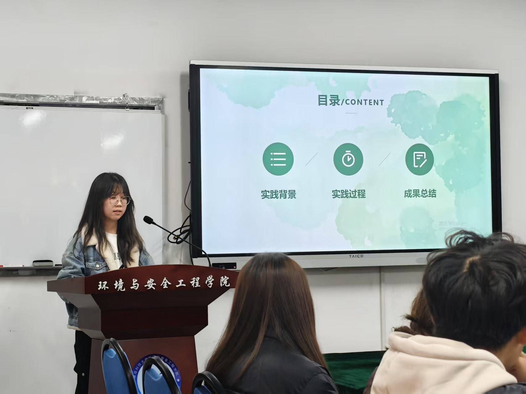 汇报会上,各队伍汇报人紧密结合实践实情,从实践背景、开展过程、成果感悟等方面进行汇报展示。兰雨鑫分享了芝罘区通伸街道的实习经历,她表示,通过实践加深了对芝罘区城市规划和环保项目的认识,坚定了毕业后返乡建设家乡的决心;崔瑜珂分享了在周村区住建局实习经历,通过参与住房普查录入、元宵节民俗展演志愿者等工作,体会到了基层工作艰辛,表示要不断加强专业知识学习,用所学知识奉献社会;桑佳琪分享了在临淄区环保局的工作经历,深切感受到人工智能技术为生态环境治理带来的革命性变革,她表示,要加强人工智能与环保领域深度融合的学习,不断助力生态环境治理;杨少谦分享了在曲阜自然资源局森林防火科的实习经历,表示要将所学专业知识应用到实际工作中,为生态保护贡献智慧和力量。