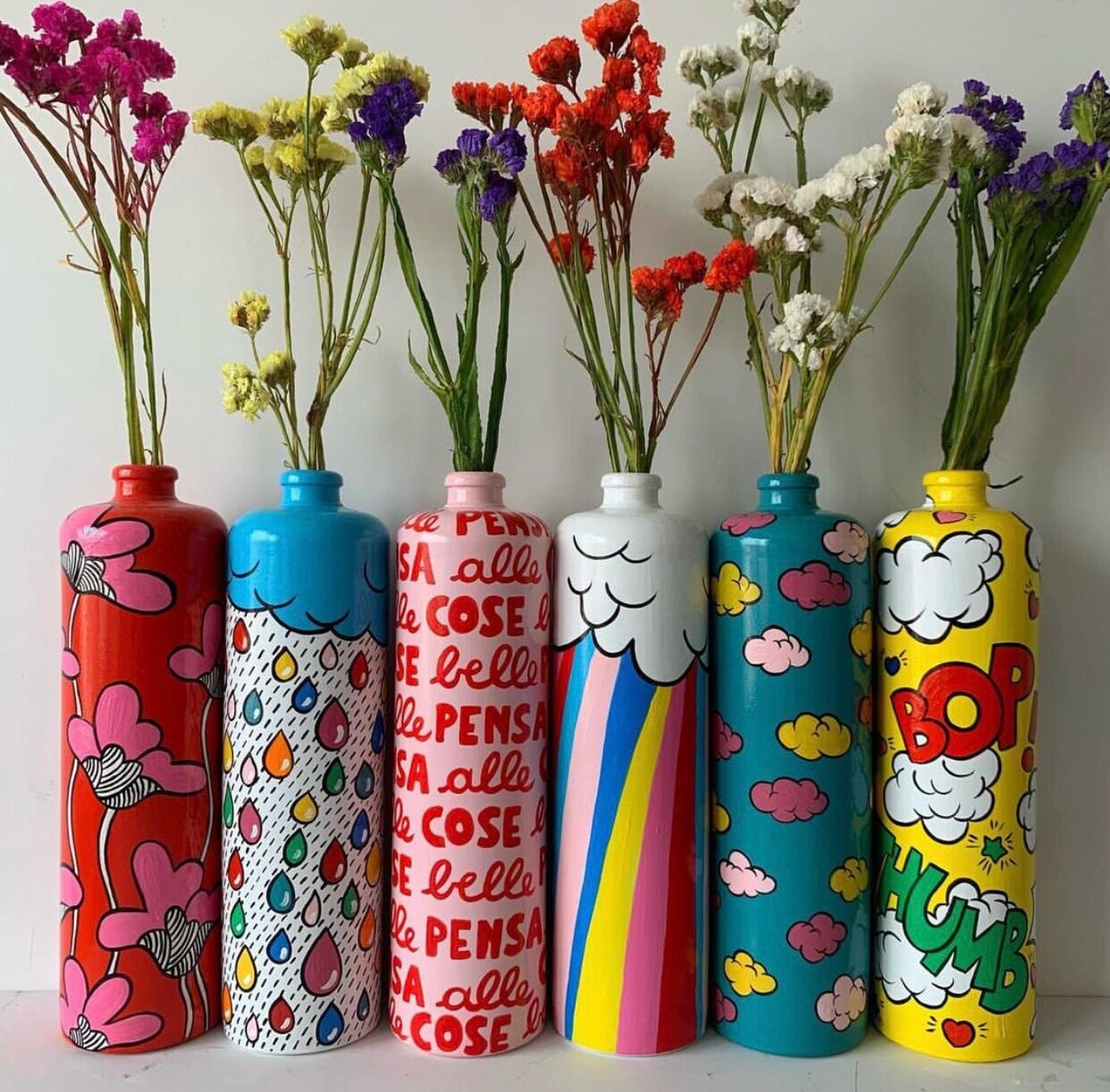 环境231班罗阳的作品《彩绘花瓶插花》,将原本被丢弃的瓶子摇身一变,成为插上鲜花的色彩斑斓、图案精美的花瓶。