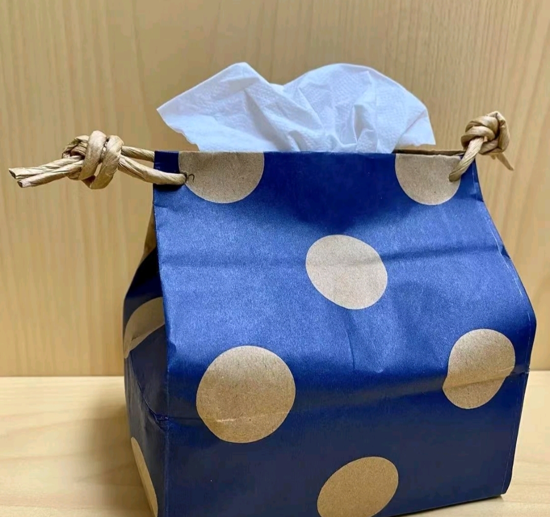 环境233刘子歆的作品《旧纸袋的实用改造》,将普通的废弃纸袋巧妙改造为实用的纸巾盒,既美观又实用。