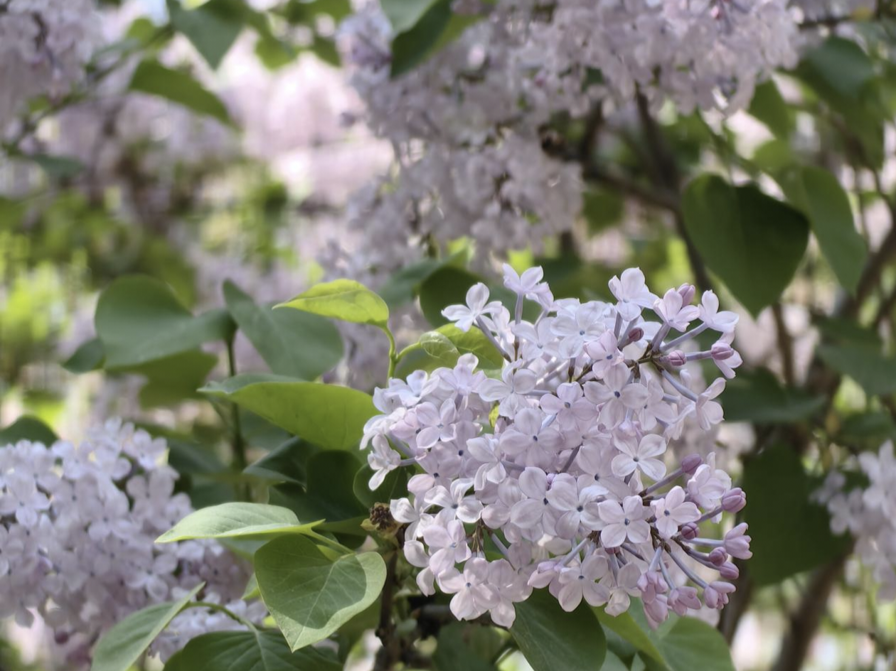环境231班陈昀的作品《紫丁香的芬芳》中,淡紫色的花串层层叠叠、错落有致,像一片片流动的紫色云彩。