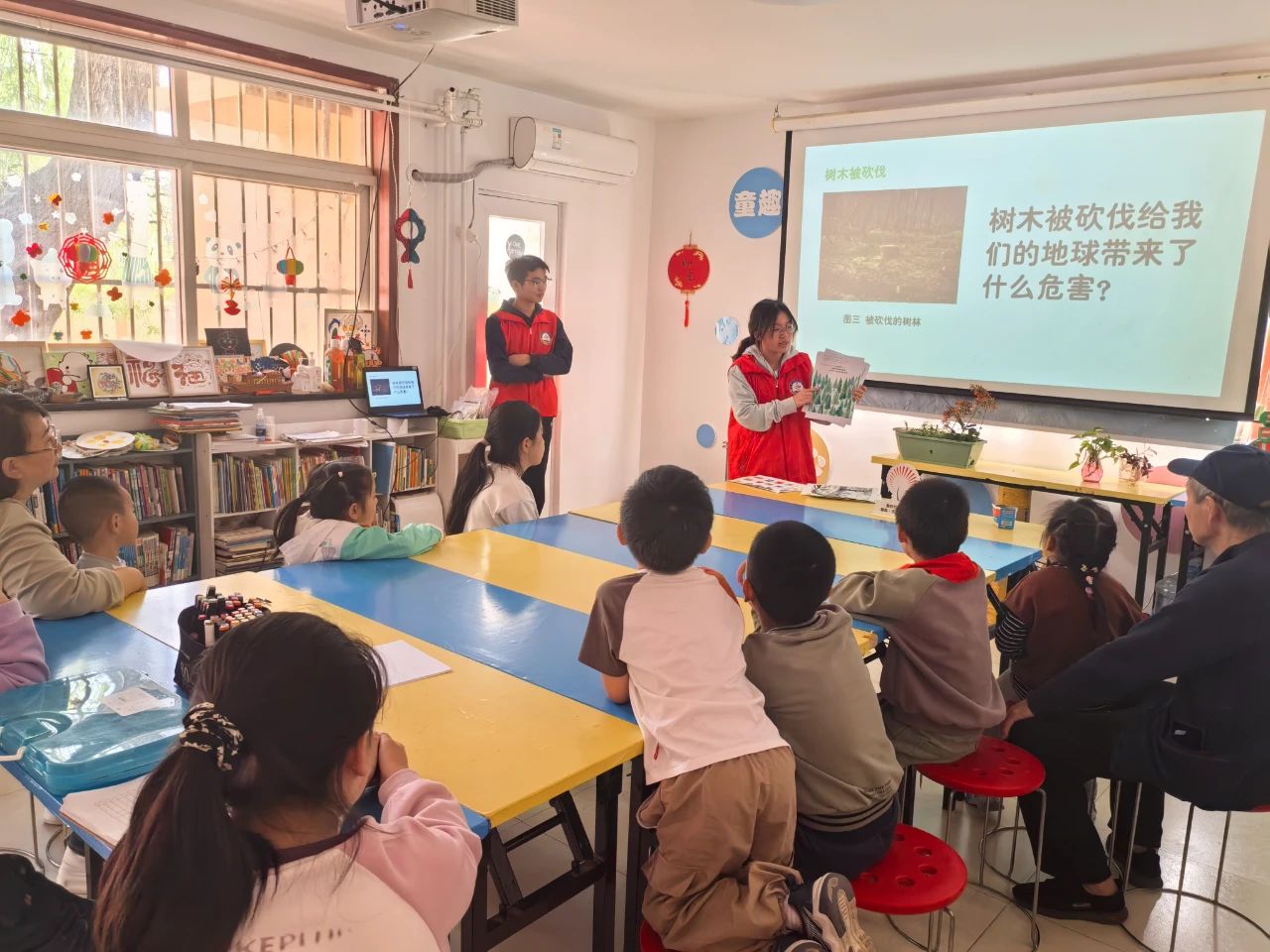 4月22日下午,学院后天环保协会走进阜阳路社区,志愿者们结合生活实际,深入浅出地向小朋友们讲解垃圾分类、资源节约、绿色出行等环保知识,向小朋友展示“变废为宝”的优秀成果,呼吁小朋友们在家也尝试动手制作,将环保知识融入日常生活。